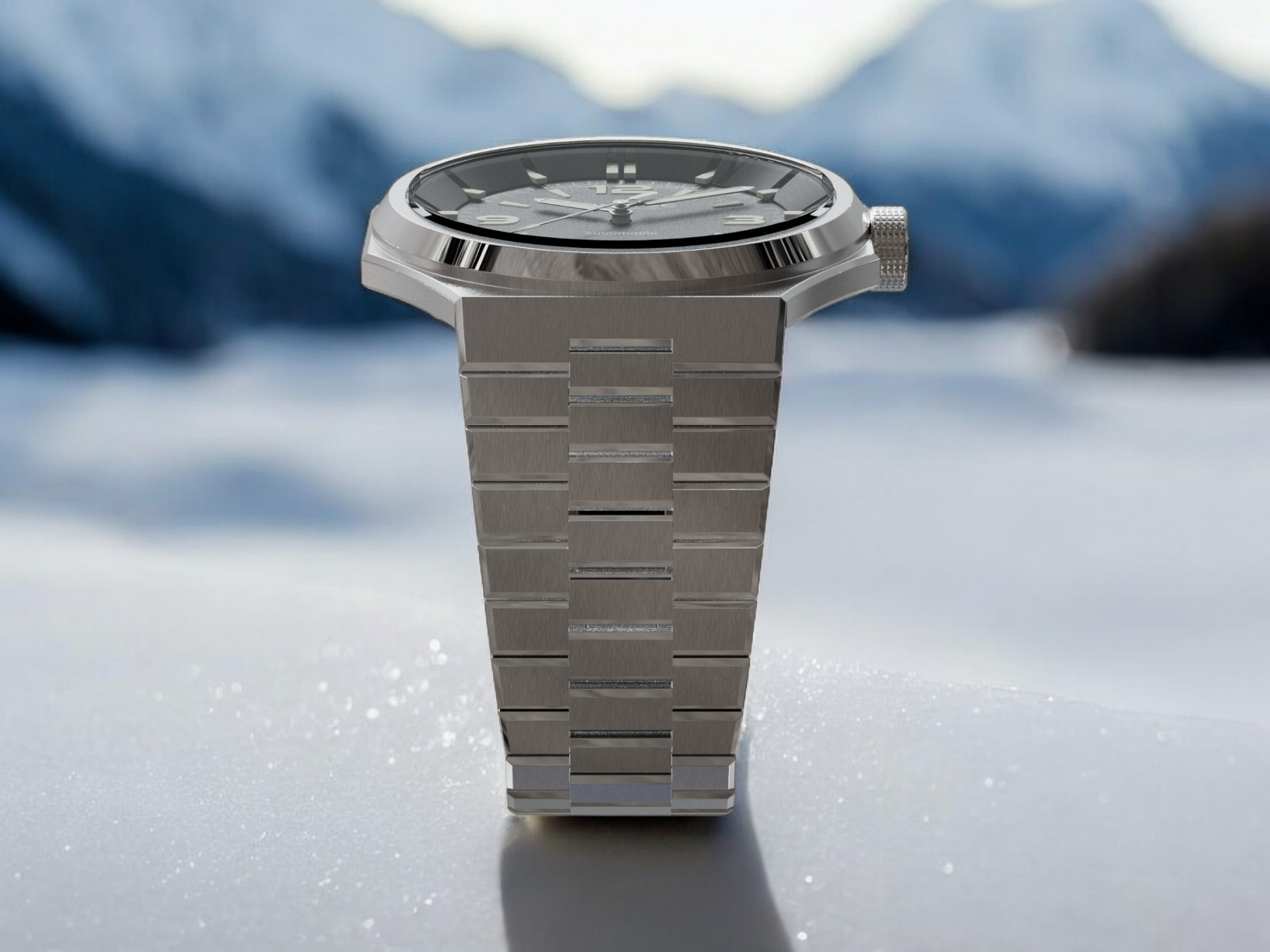 - Integrated 26 to 18mm tapered bracelet, 3mm thick
