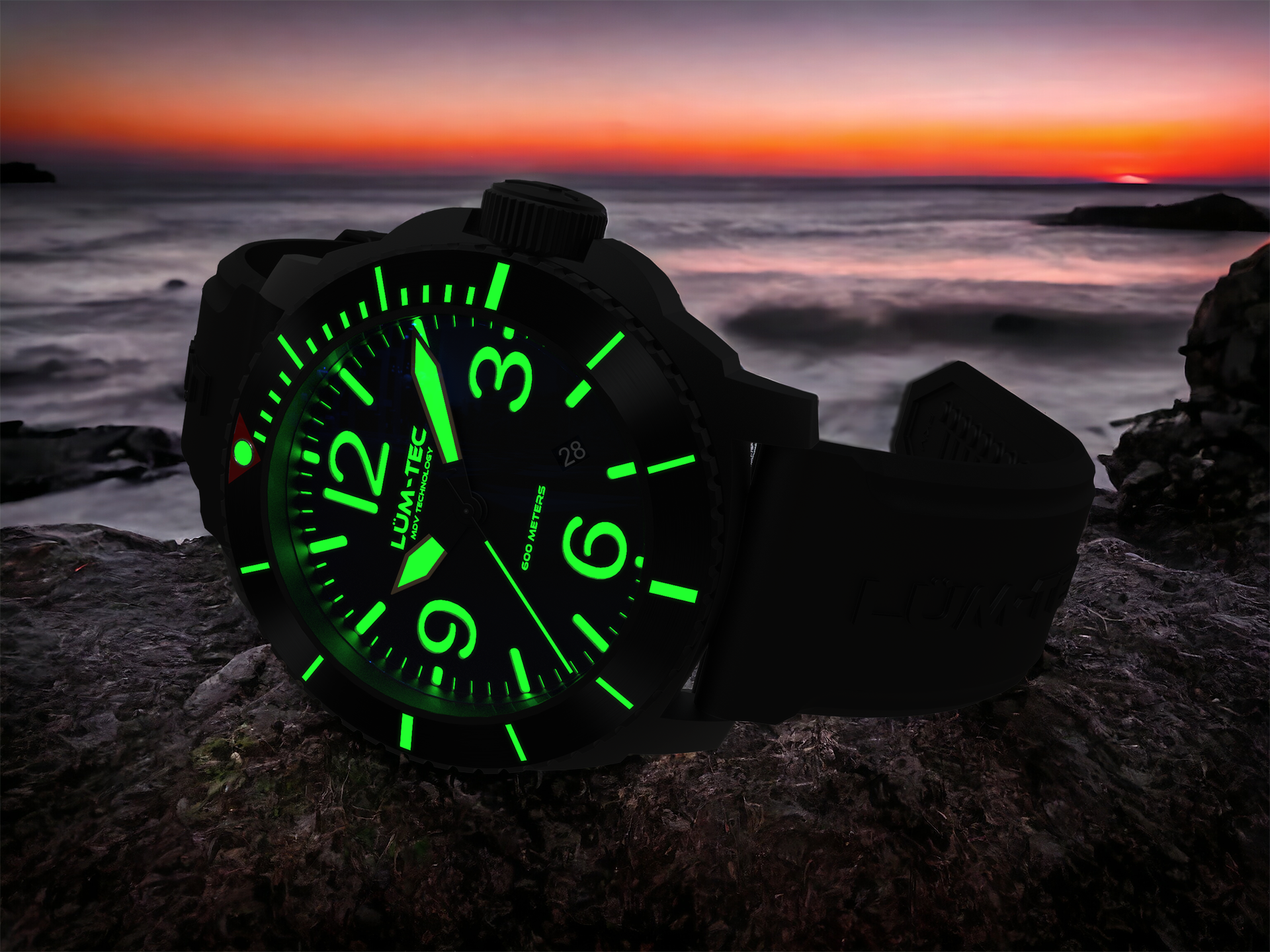 - MDV® luminous Technology custom developed grade X1 Swiss 208LE (vintage patina radium color with high luminous reactivity) on dial and hands