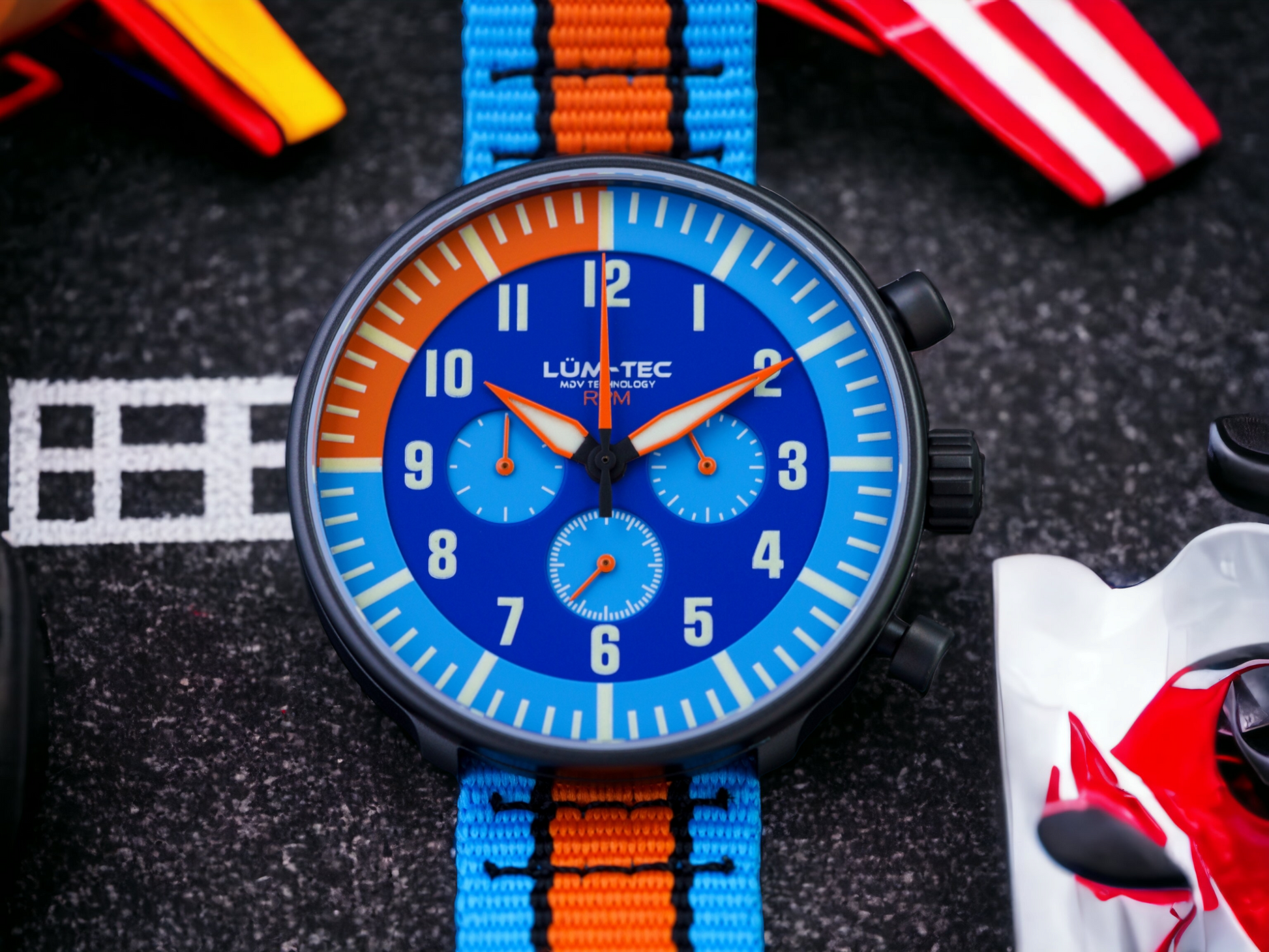 - 3-layer racing inspired dial with matte finish